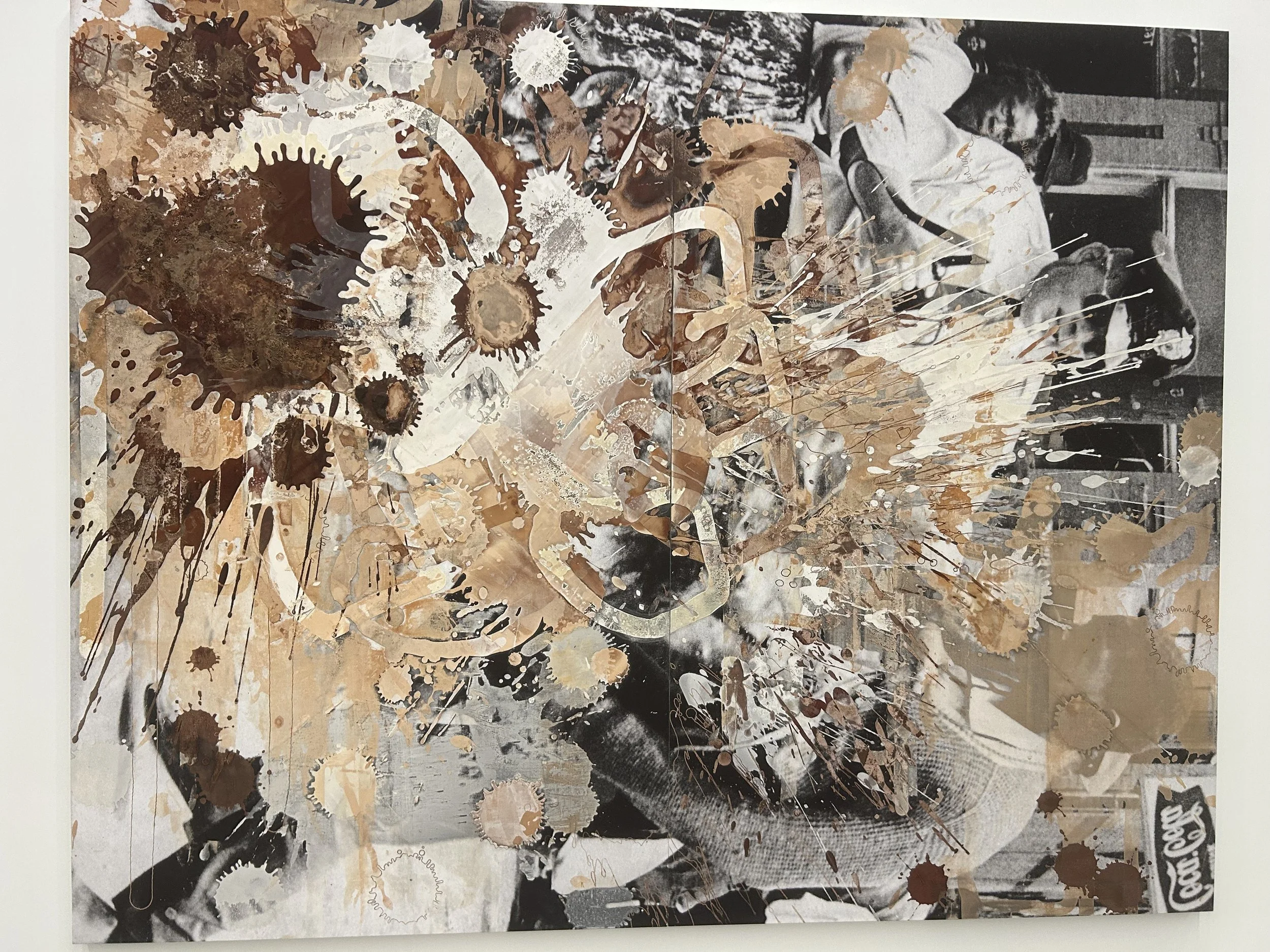 On view at the Marciano, viewers can see that the enigmatic David Hammons commands a powerful presence within the galleries. Whether it's the monumental Untitled (2010), a canvas-and-tarp piece dominating a second-floor wall, or the striking Untitled (2007) fur coat embedded with acrylic and spray paint, Hammons’s works resist simple classification. They function on both personal and collective levels, encouraging viewers to reflect on the connections between the artist’s inner world and the real-life experiences of Black Americans.